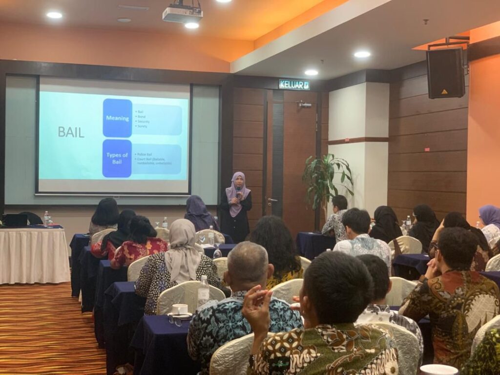On the second day in Nilai, Negeri Sembilan, the focus shifted to the Malaysian criminal justice system. Dr. Nor Hafizah Mohd Badrol Afandi from IIUM introduced the structure and key responsibilities of legal enforcement bodies such as the courts, Royal Malaysia Police, and Immigration Department. Assoc. Prof. Dr. Zuraini Ab Hamid then guided participants through criminal procedure processes including arrest, detention, trial, bail, and access to legal representation. She also provided an important briefing on handling Trafficking in Persons (TPPO) cases, with emphasis on victim assistance and the role of shelters.