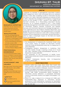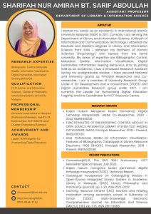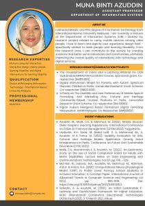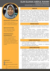 Expert Gallery Get to Know us Home Expert Gallery Poster Gallery AllExpert Poster Dr. Elin Eliana Dr. Norzariyah Dr. Nurazlin Dr. Sharifah Dr. Zainab Dr. Mohd Izzuddin Dr. Asmarani Dr. Nur Leyni Dr. Muna Dr. Shuhaili Dr. Andi Dr. Najhan Dr. Hafizah Dr Anwar Dr Asma