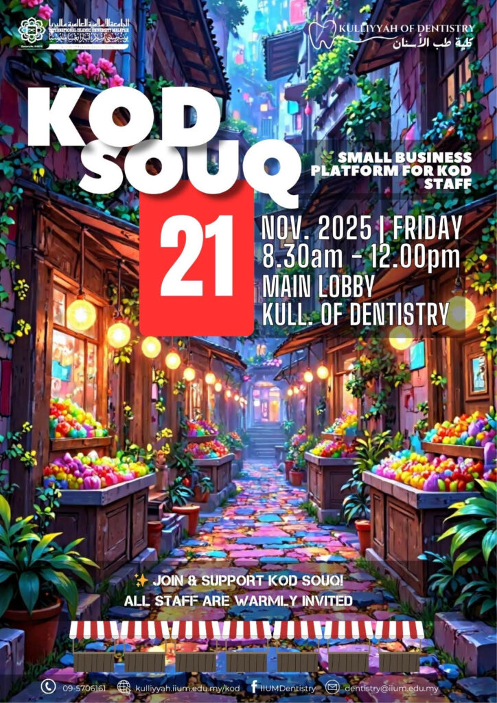 We are delighted to announce that the Kulliyyah of Dentistry (KOD) will be organizing its very own KOD Souq 2025 as follows: