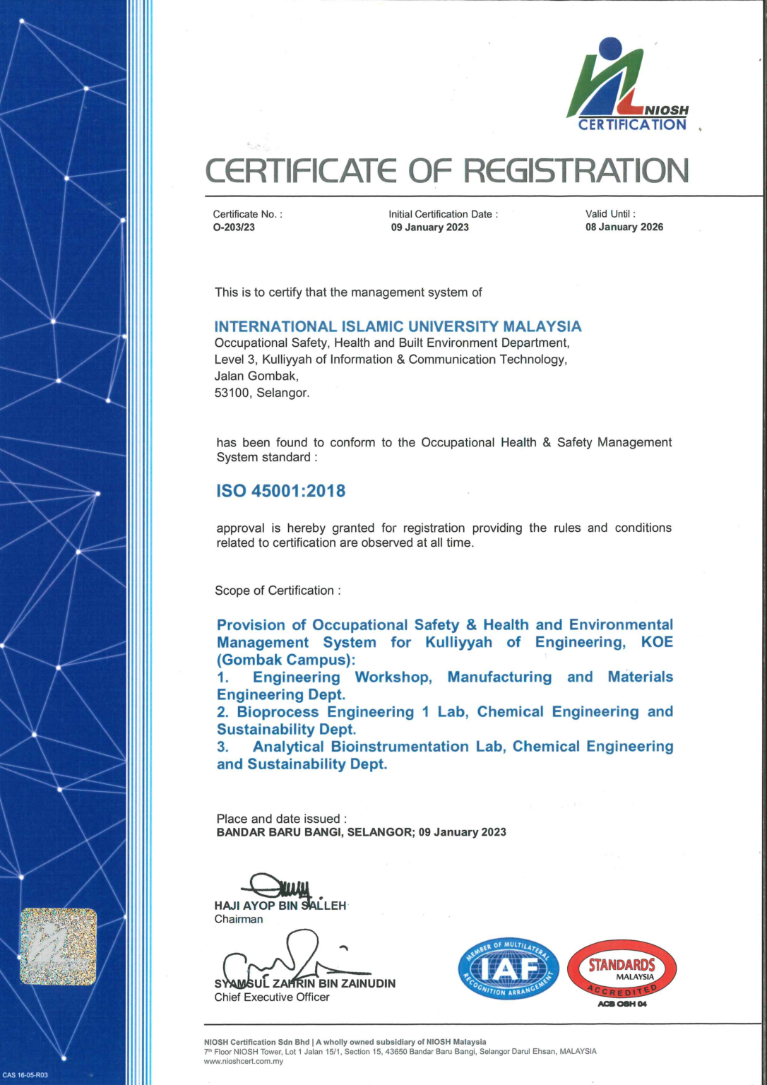 ISO 14001:2015 - ENVIRONMENTAL MANAGEMENT SYSTEM&ISO 45001: 2018 - OCCUPATIONAL HEALTH AND SAFETY (OH&S) MANAGEMENT SYSTEM