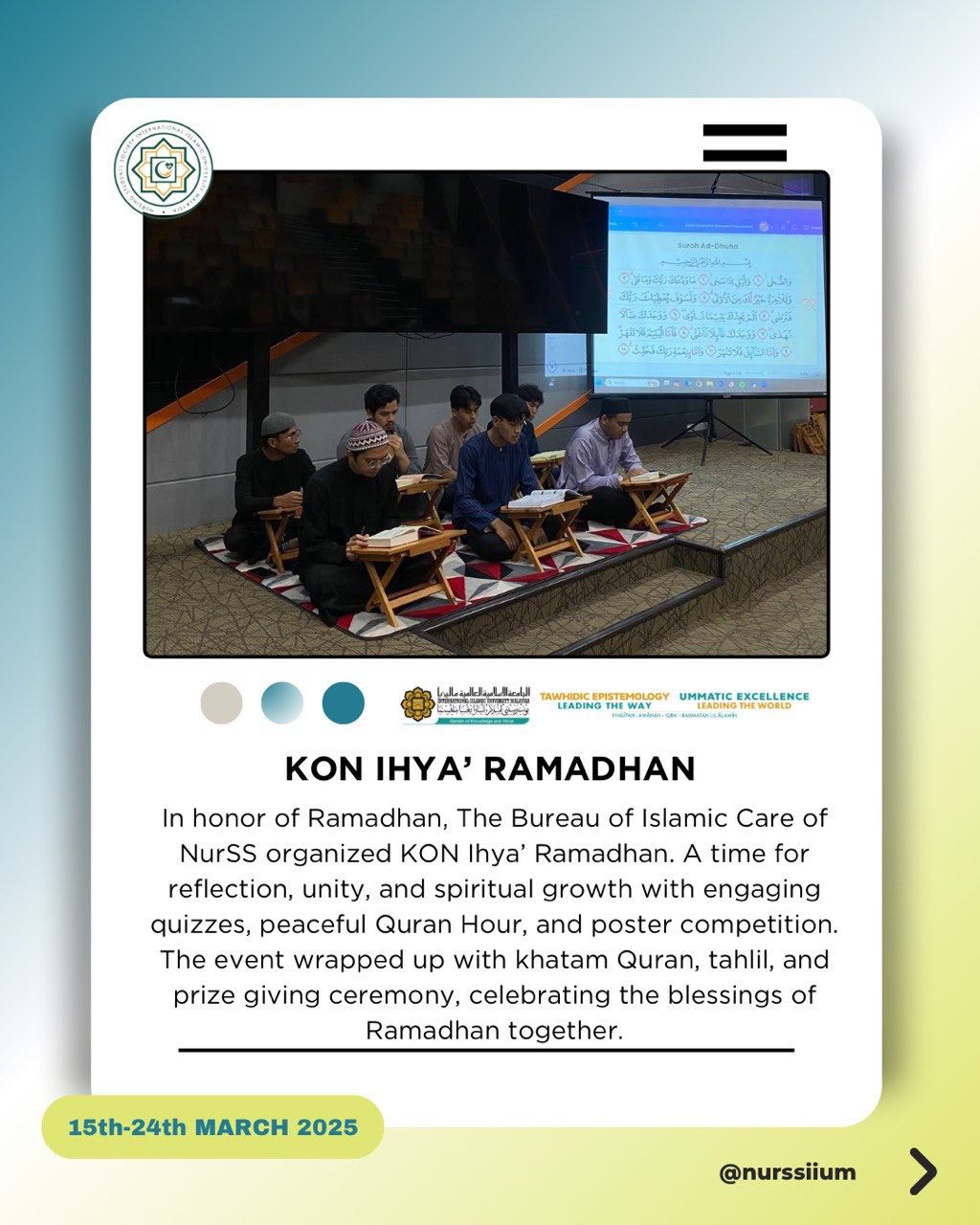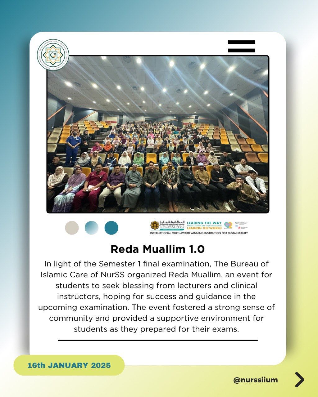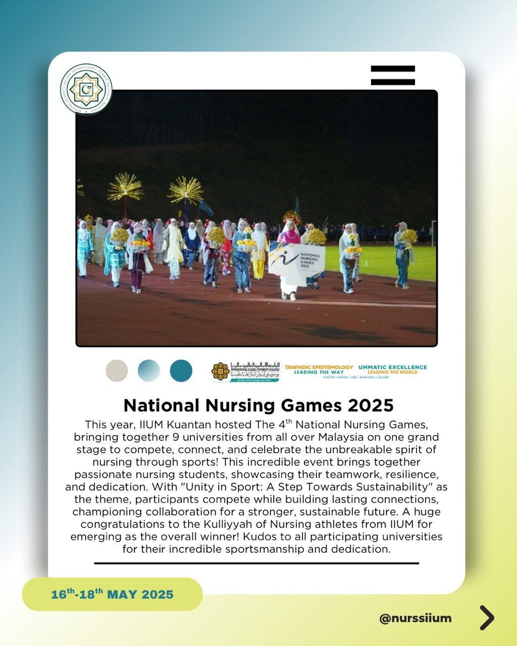 them in becoming Islamic leaders of the future. - To establish and foster a friendly link between the Kulliyyah of nursing and