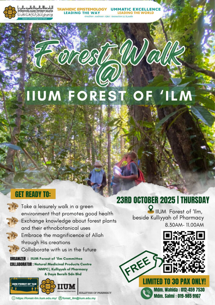 To register for this event email your details to forest_ilm@iium.edu.my