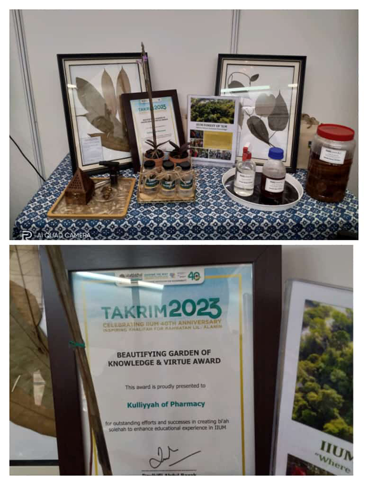 Congratulations to the Kulliyyah of Pharmacy in receiving the ‘Beautifying Garden of Knowledge & Virtue Award’ during Takrim Day 2023 for the outstanding efforts and creating bai’ah solehah to enhance educational experience in IIUM which is specially dedicated to IIUM Forest of ‘Ilm project. A special gratitude goes to the working committee members and Dayabersih Sdn. Bhd. staff for their immense efforts to this project.