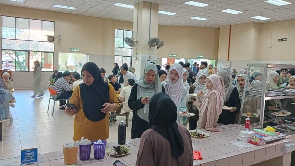 Students are queuing at the cafeteria for the Rizqi Coupon