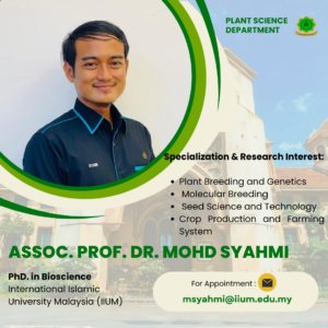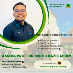 The Department of Plant Science offer Bachelor of Science in Applied Plant Sciences (Honours). TheProgramme aimed at generating and nurturing competent and skilled graduates with knowledge in plant science with Islamic values to fulfil the needs of public and private sectors in teaching, research and management. The Courses cover many exciting aspects of modern and conventional plant science, including plant taxonomy and anatomy, ethnobotany, plant diversity and breeding, plant chemistry, cell and molecular biology, genetic engineering, plant-pathogen and plant environment interactions, plant physiology and ecology, and several others.