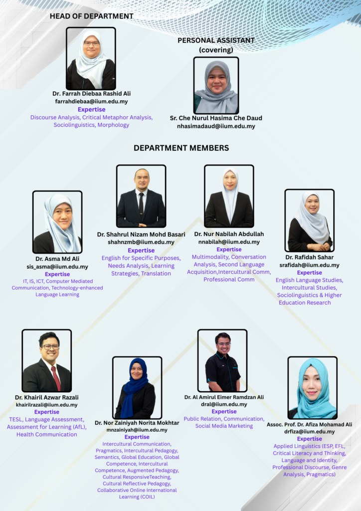 Welcome to the Department of English Language, Kulliyyah of Languages and Management, IIUM.
